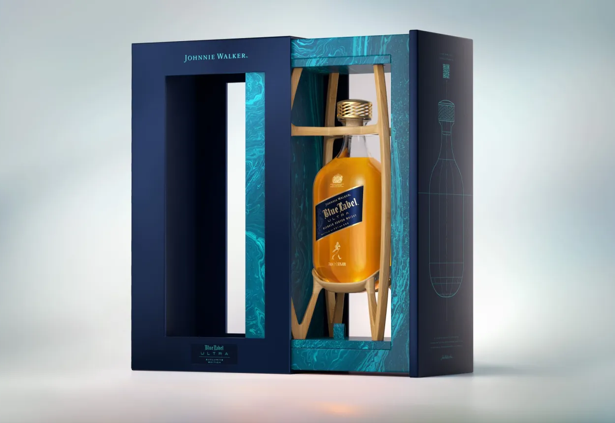 Johnnie Walker Blue Label presenta una edición limitada bajo la máxima de que menos es más y redefine la elegancia con una botella menos pesada y más sustentable. Con solo 180 gramos de vidrio soplado a