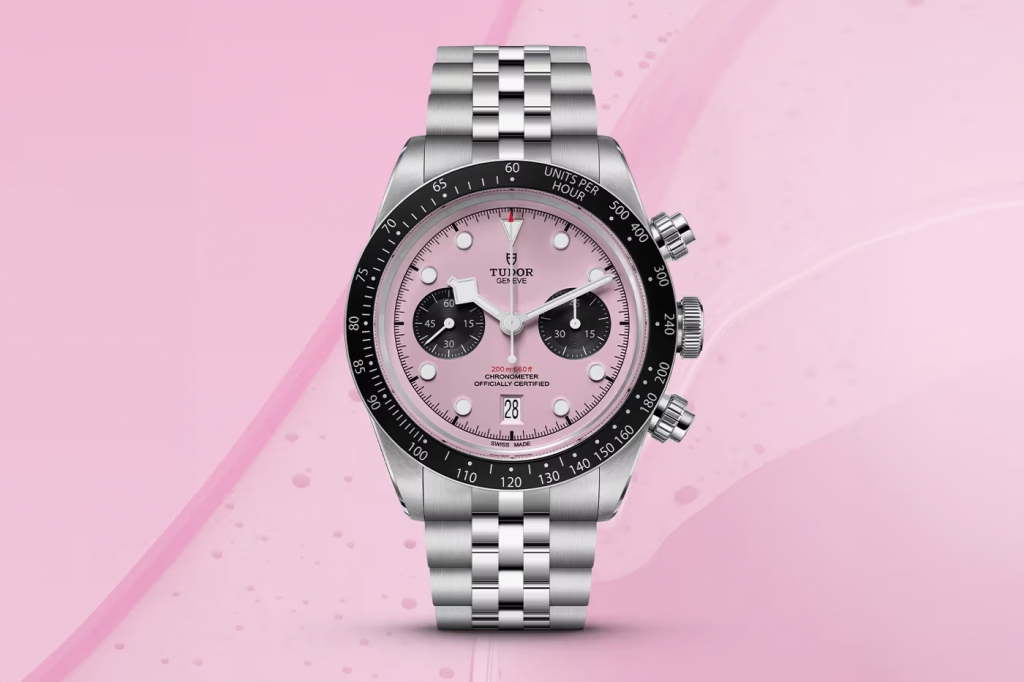Impulsado por el calibre de cronógrafo de manufactura MT5813 de la marca, certificado por el COSC, con 70 horas de reserva de marcha, el Tudor Black Bay Chrono “Pink” tiene un truco notable en la manga: está acoplado al nuevo brazalete de cinco eslabones de la marca para 2023, tipo Jubilee, de acero inoxidable con cierre “T-fit”, que se ajusta automáticamente mediante un sistema de resorte para expandirse y contraerse con la muñeca. También se entrega con una garantía de cinco años. ¿Su precio? $5,675 dólares.